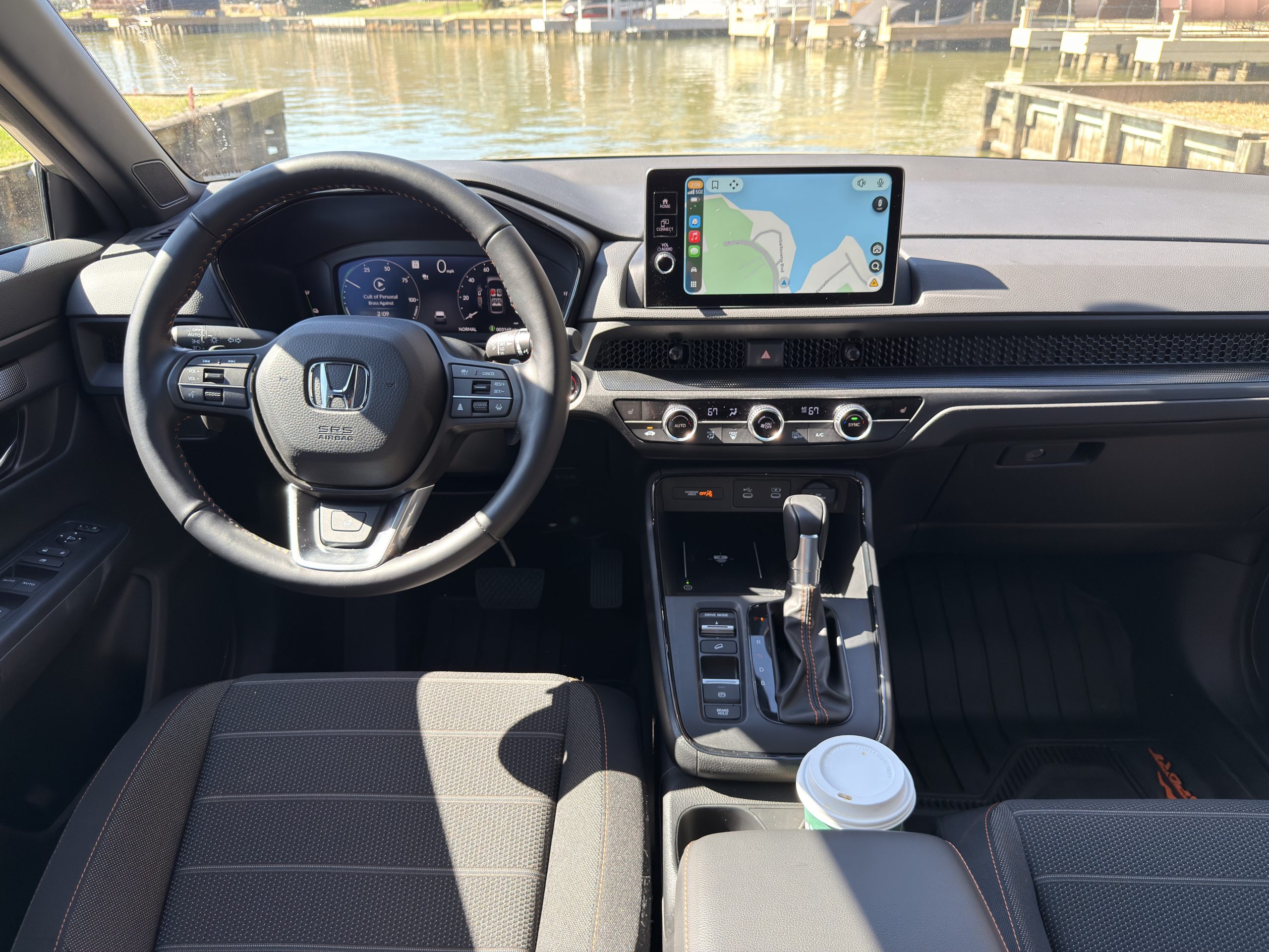 If the exterior makes a measured argument for the CR-V Hybrid TrailSport, the interior closes the case.