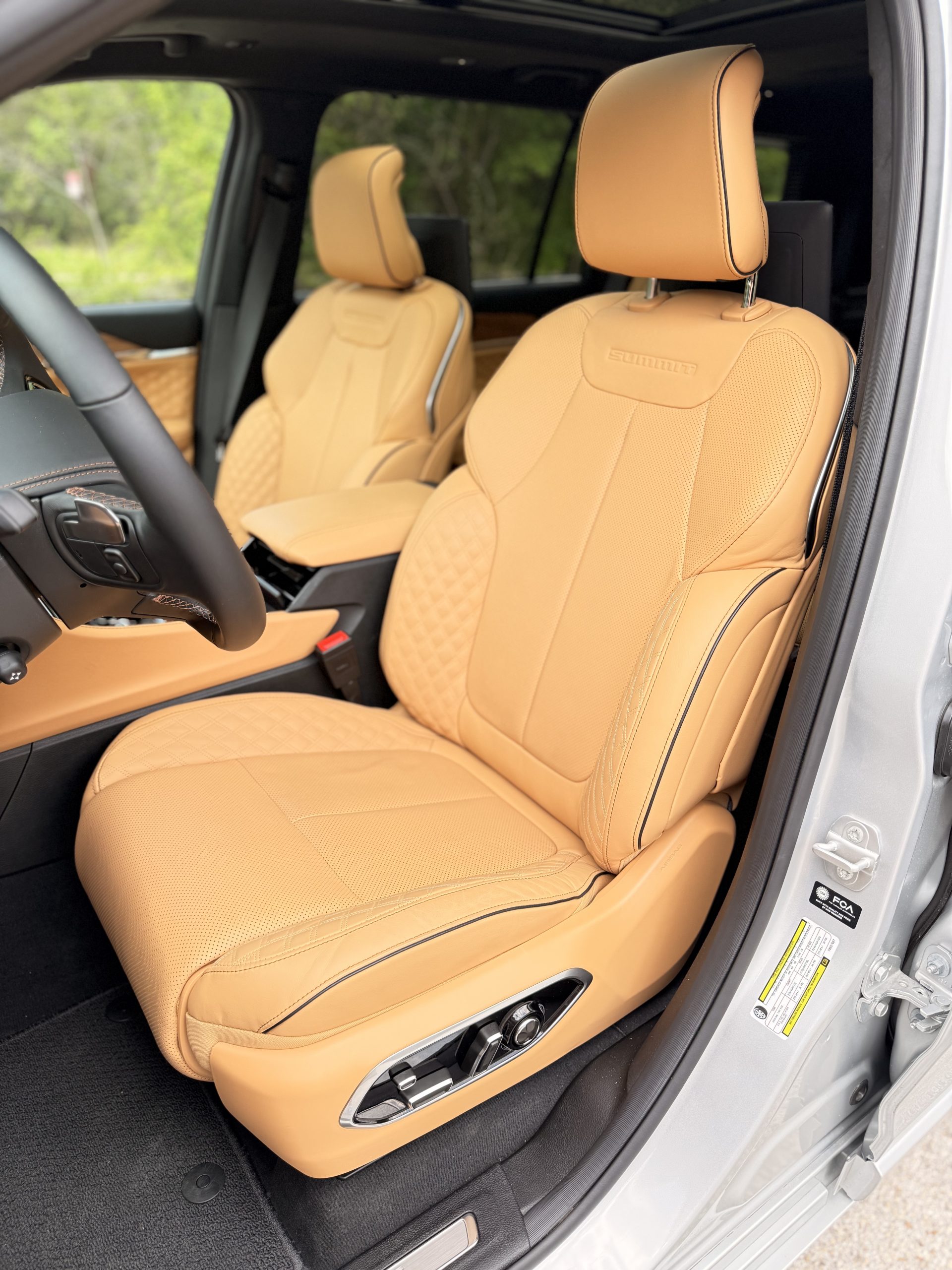 Step inside and the Silver Zynith and the dark exterior accents give way to something warmer and considerably more personal. The Summit specification presents the Tupelo and Black interior pairing with Palermo leather across the seating surfaces, the kind of leather that communicates its quality through texture and weight rather than shine. No aspirational approximation here. The real thing.