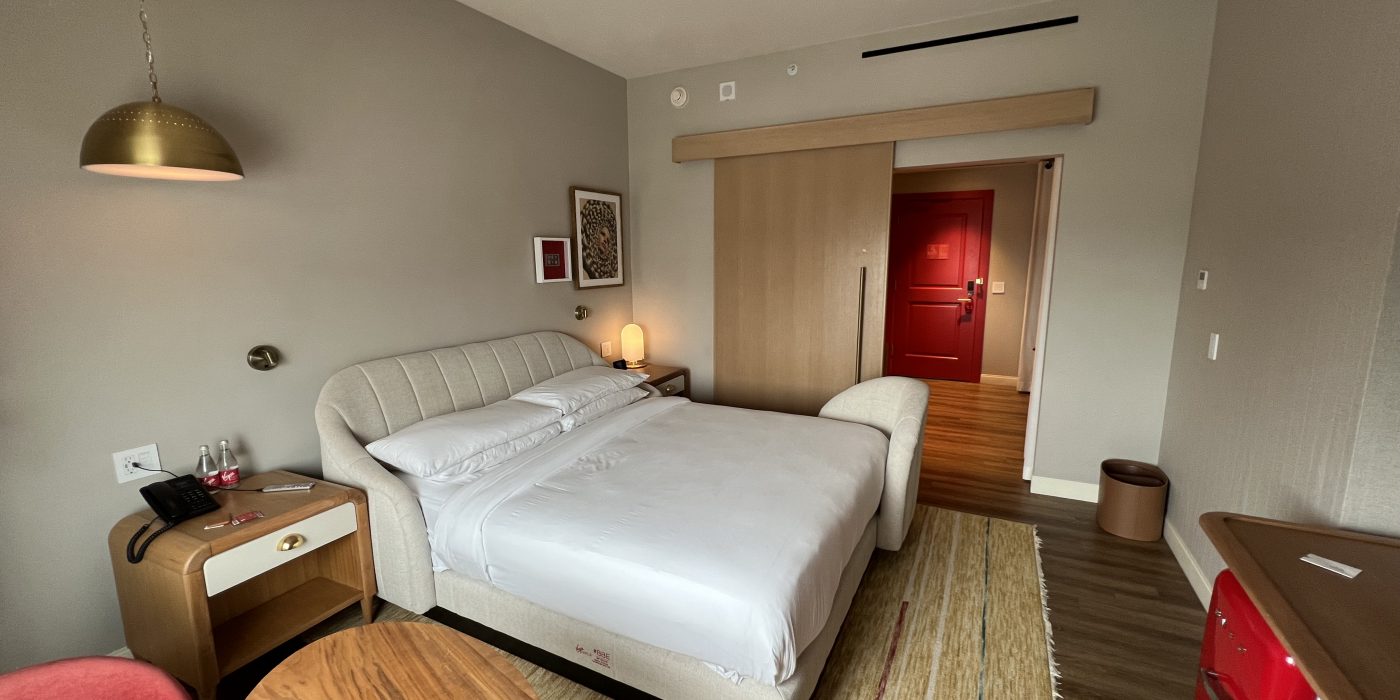 The spacious accommodations are a perfect blend of comfort and style. Floor-to-ceiling windows flood the space with natural light and the amazing Dallas skyline, while the plush bedding and modern amenities beckon you to relax and unwind. Easily perhaps the softest most inviting bed found in any hotel. But it’s the thoughtful touches, like the curated mini-bar and the in-room yoga mat, that truly set this hotel apart.